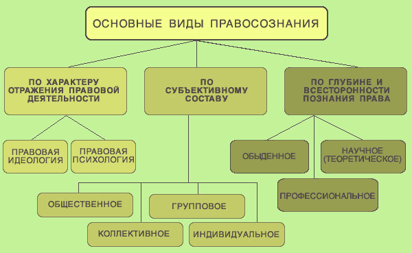 Индивидуальное правосознание - совокупность правовых взглядов и чувств каждого конкретного индивида. Будучи в принципе неспособным полно и глубоко охватить весь комплекс правовых явлений в обществе, оно отражает лишь некоторые наиболее существенные его черты. При этом, в силу разных способностей индивида, форм участия его в общественной жизни, несовпадающих условий жизни, труда, быта, различия в уровне правосознания отдельных личностей бывают довольно значительны. У одних оно может быть глубоким, максимально приближенным к общественному, у других - ограниченным, отстающим от общего уровня общественных, правовых взглядов. Такие различия всегда следует иметь в виду при организации правового воспитания, пропаганде законодательства.