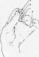 3. Затем переведите взгляд на негативное пространство выше ногтя. Нарисуйте эту форму. Переключите внимание на пространство под ногтем. Это будет частью руки, но мы можем назвать ее негативным пространством/формой. Нарисуйте эту форму. Если хотите, можете продолжать рисовать одно негативное пространство/ форму за другим, а можете остановиться в любой момент. Рис. 15.7 демонстрирует указанную процедуру.