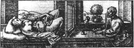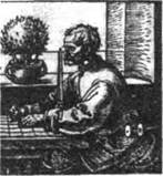 Рис. 17.8. Дюрер переносит визируемые точки на расчерченный лист бумаги