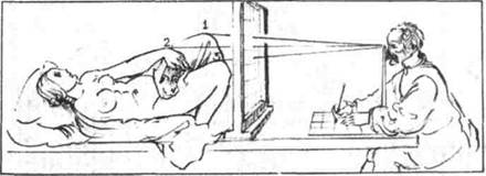 Рис. 17.7. Перпендикулярный столбик фиксирует положение визирующего глаза Дюрера