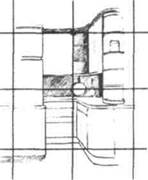 С помощью этой пластиковой сетки вы нарисуете угол комнаты или какой-то другой вид в окружающей обстановке, который вы находите интересным и трудным — например коридор или угол кухни. Этот рисунок поможет вам освоить навык, состоящий из двух взаимосвязанных и равноценных частей: вы научитесь, во-первых, видеть вещи «в пропорции» или «в перспективе» — то есть вещи как они есть, не искаженные концептуальными идеями, — а во-вторых, видеть вещи в их отношении к константам. В рисовании константами являются вертикаль и горизонталь, относительно которых отмеряются и проверяются углы. Сетка поможет вам перенести образ с плоскости изображения на бумагу. Сетка обеспечивает: а) формат, или граничную линию; б) константы (вертикаль и горизонталь); в) средство измерения относительных пропорций; г) глитч, не дающий мозгу изменять или ложно интерпретировать поступающую информацию.