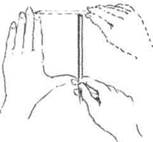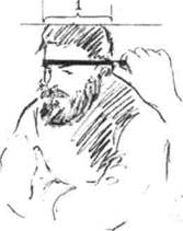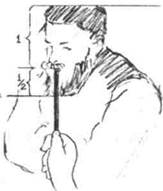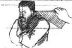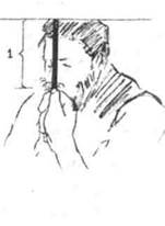 7. Держа карандаш в вытянутой руке горизонтально, наведите его кончик на один край головы модели и отметьте положение другого края ногтем большого пальца (рис. 17.24). Удерживая палец на месте, зафиксируйте эту мерку (назовем ее «единицей») и, не меняя положение локтя, поверните карандаш вертикально и измерьте длину головы (до нижней точки бороды). Вы обнаружите, что соотношение составит примерно единицу к полутора (1: 1'/2) (рис. 17.25 и 17.26).