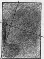 3. Легким нажимом карандаша обведите негативные пространства по левую сторону от волос, щеки, подбородка и плеча. Затем нарисуйте тонкую линию (называемую «центральной осью»), которая проходит через переносицу и середину рта. Как вы видите на рис. 18.19, центральная ось в данном случае наклонена (относительно края бумаги, задающего вертикаль). Затем нарисуйте тонкую линию, обозначающую уровень глаз (называемую «линией уровня глаз»). Эта линия пересекает центральную ось. Заметьте, где эти две важные линии пересекают края формата.