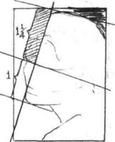 6. Приложив карандаш к фотографии модели, вы можете измерить соотношение: под этим углом зрения оно составляет 1: 1'/4. Вы заметите, что нижний край подбородка отстоит от нижнего края формата несколько больше чем на четверть длины формата. Отметьте эту точку