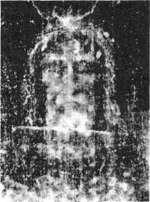 *Туринская плащаница», изображение человека на полотняной ткани, которая, как утверждают, была плащаницей, в которую завернули Иисуса после распятия. Изображение получилось якобы в результате соприкосновения ткани с головой и телом Иисуса. Фото Вернона Д. Миллера, 1978