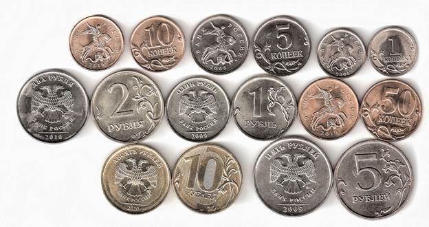 - монеты - номинал 1, 5, 10 и 50 копеек, 1, 2, 5, 10 и 25 рублей;