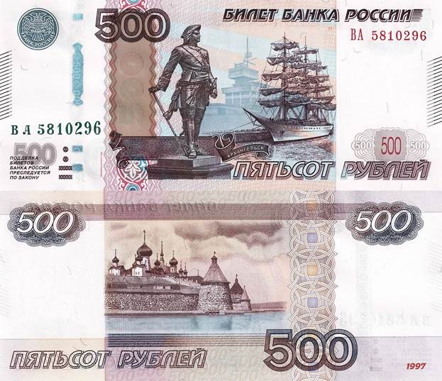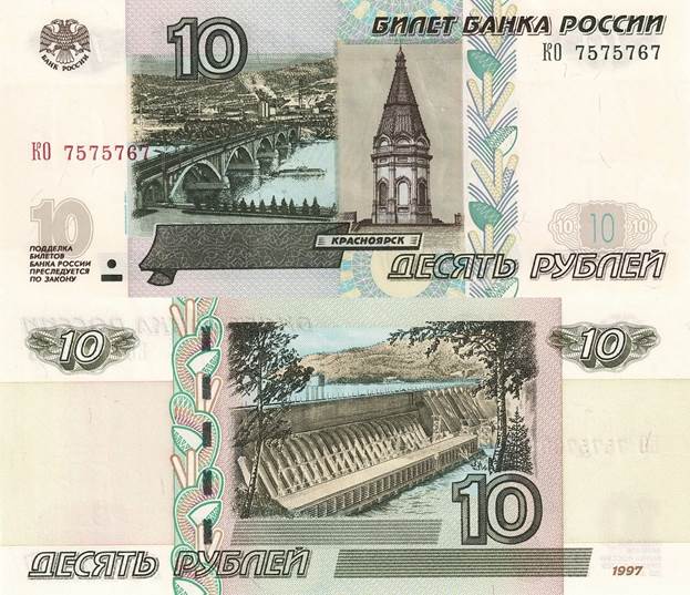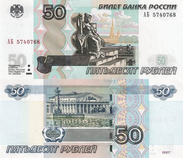 - банкноты - номинал 10, 50, 100, 500, 1000 и 5000 рублей.