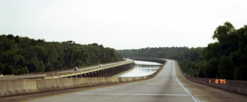 Эта метафора буквализировалась в 1995 году, когда я в предместье городка Мобил, штат Алабама, я очутился на автостраде, которая пролегала над жуткими джунглями и болотными топями с кишащими в них крокодилами. По логике русского человека эти топи нужно было сперва осушить, а затем проложить дорогу. Однако американцы поступили иначе – highway вытянулся на сваях поверх болота: