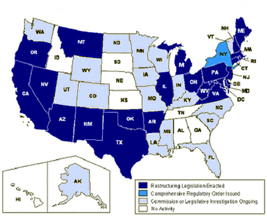 Restructuring Legislation Enacted – штаты, в которых дерегуляционное законодательство принято;