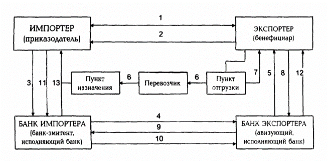 Экспортер и импортер заключают контракт на поставку товаров или оказание услуг с указанием того, что расчеты будут осуществляться в форме аккредитива. Импортер обращается в свой банк (банк-эмитент) с заявлением об открытии аккредитива в пользу экспортера. Банк-эмитент направляет аккредитивное письмо одному из банков в стране экспортера, с которыми он поддерживает корреспондентские отношения (авизующий банк), поручая ему передать аккредитив экспортеру.