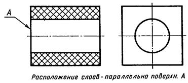 3.1.14. Сварное, паяное, клееное и тому подобное изделие из однородного материала в сборе с другими изделиями в разрезах и сечениях штрихуют в одну сторону, изображая границы между деталями изделия сплошными основными линиями (черт. 35). Допускается не показывать границы между деталями, т. е. изображать конструкцию как монолитное тело.