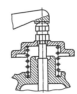 3.1.10. Изделия, расположенные за винтовой пружиной, изображенной лишь сечениями витков, изображают до зоны, условно закрывающей эти изделия и определяемой осевыми линиями сечений витков (черт. 31).