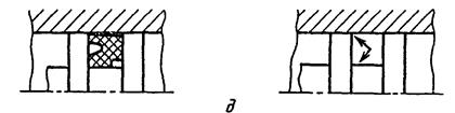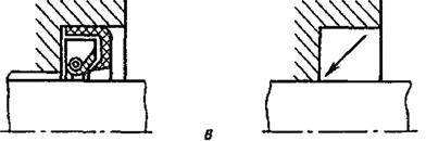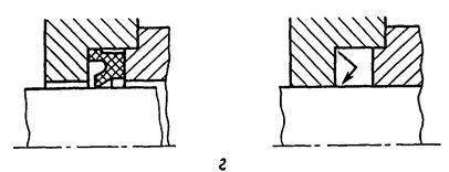 3.1.13а. На сборочных чертежах допускается уплотнения изображать условно, как показано на черт. 34 (в, г, д), указывая стрелкой направление действия уплотнения.