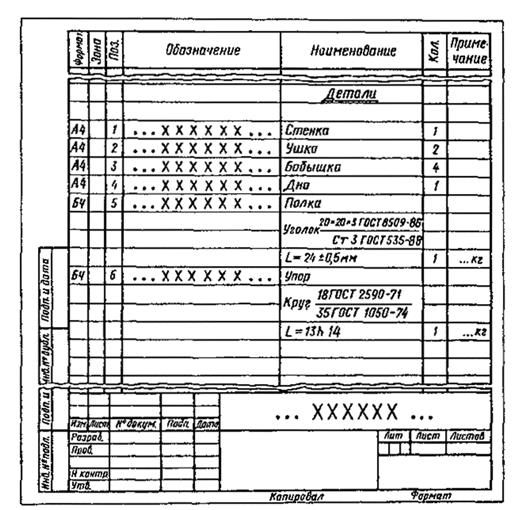 3.3.3. Когда для изготовления по сборочному чертежу детали несложной конфигурации (без выпуска на нее самостоятельного чертежа) устанавливается определенный сортовой материал, то соответствующие размеры детали приводят в спецификации.