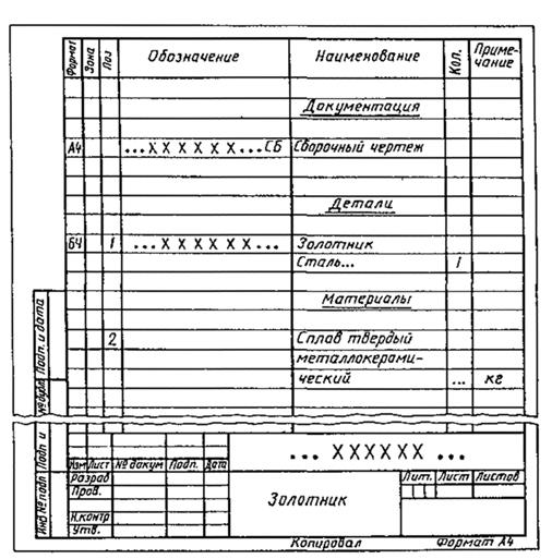 3.3.7. Направляемые металл, сплав, пластмассу, резину и другие материалы, которыми заливают армирующие детали, записывают в спецификацию сборочной единицы в раздел «Материалы».