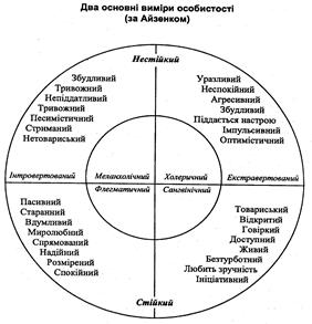 по двох основних параметрах за (Г. Айзенком):