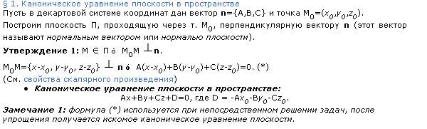 задает плоскость, и наоборот: всякая плоскость может быть представлена уравнением (3.1), которое называется уравнением плоскости.
