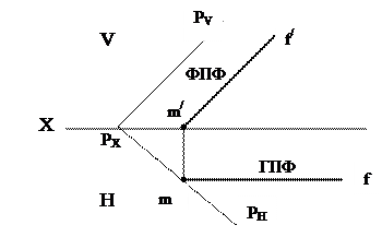 На эпюре у плоскости, заданной следами ГПФ // Х, а фронтальная проекция ФПФ // РV.
