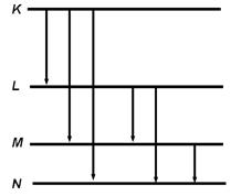 Рисунок 1. Упрощенная схема рентгеновских уровней и переходов между ними.