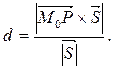 Расстояние d от точки P до прямой (l) равно длине перпендикуляра, опущенного из точки P на прямую. Этот перпендикуляр есть высота параллелограмма, построенного на векторах
