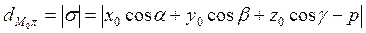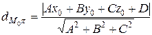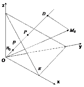 и начало координат O находятся по разные стороны от плоскости, иначе со знаком “–”. Если точка