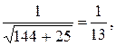 где знак “плюс” выбран так, как С = -65. Тогда имеем (12/13)х - (5/13)у - 5 = 0, следовательно, нужное нам расстояние равно р = 5.