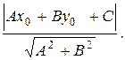 Расстояние от точки (х0, у0) до прямой (8.1) вычисляется по формуле:
