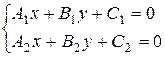 Если прямые А1х +В1у + С1 = 0 и А2х + В2у + С2 = 0 пересекаются, то их точку пересечения можно найти, решая систему:
