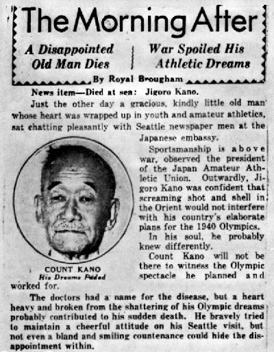 Еще одно усилие – и дзюдо станет первым и пока единственным национальным японским видом спорта, окончательно признанным на международной арене. Но многим надеждам не суждено было сбыться. Кано сильно нервничал, принимая активное участие в подготовке к Олимпийским играм 1940 г. Мир чувствовал приближение войны. Япония уже вела боевые действия в Китае, еще в марте 1933 г. она вышла из Лиги Наций, что сильно осложнило ее положение на международной арене. Все это могло закончиться тем, что Япония была бы исключена из МОК и все надежды Кано на то, что дзюдо выдвинется на олимпийскую арену, пошли бы прахом.