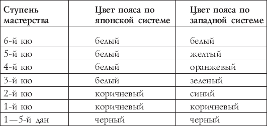 Интересное явление произошло с градацией поясов в период введения дзюдо на Западе. Как известно, одними из первых дзюдо переняли французы. Им показалось, что градация поясов недостаточно дробная и из-за этого малопривлекательна. Например, по японской системе обладатели с 6-го по 3-й кю носят одинаковые белые пояса и внешне ничем не отличаются друг от друга. Но европейцам необходимы были звания, дипломы, внешние знаки отличия. На запросы западной публики тут же откликнулся Каваиси, официальный представитель Кодокана, руководивший развитием дзюдо во Франции с конца 30-х гг.. Он ввел большее количество цветных поясов; например, в тех случаях, когда японские дзюдоисты носили белый пояс, французы, а за ними и все западные борцы стали подвязывать кимоно желтыми, оранжевыми, зелеными и синими поясами. Поэтому сегодня при наличии единой классификации мастерства в дзюдо японские и западные дзюдоисты могут носить разные пояса.