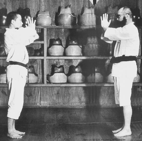 Приветствие в Сёриндзи-кэмпо пришло, вероятно, из китайских тайных обществ, связанных с буддизмом. Справа – Сё Досин