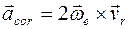 - вектор угловой скорости подвижной системы отсчета. Если этот вектор коллинеарен вектору относительной скорости или равен нулю (при поступательном движении подвижной системы отсчета), то кориолисово ускорение отсутствует.
