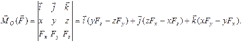 , а x, y, z - проекции радиус-вектора (то есть координаты точки приложения силы). Тогда момент вектора относительно начала координат