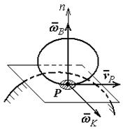 Пусть твердое тело - объект исследования – движется, опираясь на неподвижную опору в точке Р (рис. 17). Движение тела можно представить как поступательное вместе с полюсом Р (скольжение в касательной плоскости со скоростью