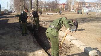 | Экологический марафон Уборка прилегающей территории памятников: «Пострадавших в годы репрессий и гражданского террора», «Погибшему в авиакатастрофе экипажу пикирующего бомбардировщика ПЕ -2 19.01.43г.» | 18 апреля 2015г. Территория памятников: «Пострадавших в годы репрессий и гражданского террора», «Погибшему в авиакатастрофе экипажу пикирующего бомбардировщика ПЕ -2 19.01.43г.» | Силами кадет ГБОУ «Чистопольская кадетская школа-интернат» под руководством воспитателя школы Ильина В.Ф. была произведена тщательная уборка прилегающей территории памятников: «Пострадавших в годы репрессий и гражданского террора», а также «Погибшему в авиакатастрофе экипажу пикирующего бомбардировщика ПЕ -2 19.01.43г.» с целью привлечения внимания к экологическим проблемам и в знак уважения к истории своего города. Кадеты не только подгребли весь мусор, помыли памятники, покрасили ограды, побелили бордюры, вскопали клумбы и почистили лопатами дорожки от травы, но и возложили цветы. Таким образом, территория вокруг памятника готова для проведения праздничных мероприятий, посвященных Дню Победы.