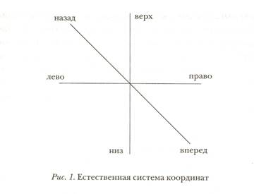 Для структурирования внутреннего мы можем использовать естественную систему ориентации, поскольку эта структура является базовой структурой сознания и знакома всем: верх низ, право лево, вперед назад. Так организовано наше внутреннее пространство. Все, о чем мы мыслим, находится либо наверху, либо внизу, справа или слева, впереди или позади. Внутреннее содержание нашей памяти, сознания в целом, мышления, восприятия и переработки информации все укладывается в эту структуру. Плоха она или хороша? Она ни плоха и ни хороша, она естественна. Вот мы стоим на плоскости. Есть низ благодаря земному тяготению, есть верх благодаря тому, что мы вертикально ходящие, есть одна сторона одна рука, вторая сторона вторая рука, есть что-то передо мной, есть что-то позади меня.