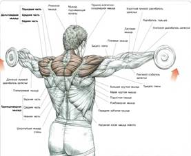 Воздействие на основные м.г.: дельтовидные мышцы, верхняя часть трапециевидных м.