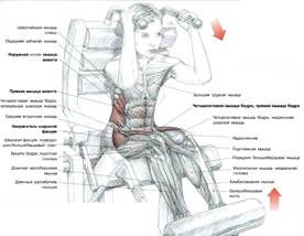 И.П. сидя в тренажёре, упор на уровне груди, руки на поручнях.