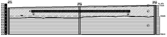 Рис. 3.2 Геологический разрез участка по скважинам 1 – 2 – 3.