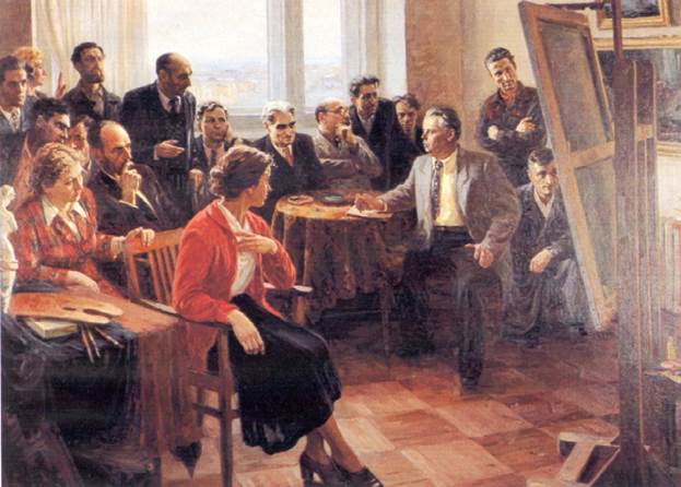 В 1960-е гг. вновь начинается подъем художественного творчества, хотя и находящегося в соответствии с идейно-политическими установками под бдительным контролем. Художники-шестидесятники - эта тема еще не изучена историками культуры региона. Сошлемся на материалы недавних искусствоведческих чтений, проведенных в Омске и посвященных творчеству одного из представителей этой плеяды Николая Михайловича Брюханова12. В пятом томе Истории Сибири отмечалось лишь, что в годы семилетки рядом с признанными мастерами изобразительного искусства широким фронтом выступает молодежь, которая приносит с собой свое, во многом новое видение окружающего мира, иные средства художественной изобразительности. Выступления многочисленных представителей молодого поколения художников, соревнование различных почерков и стилейхарактерная черта живописи и скульптуры нашей страны на протяжении последнего десятилетия.