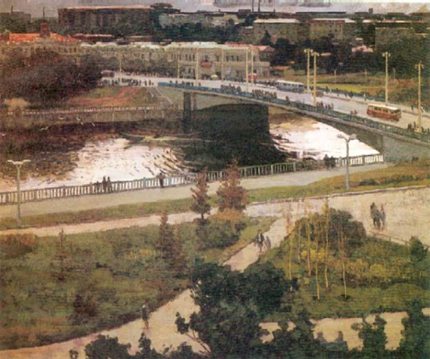 Усиление градостроительных работ приводит к очередным изменениям городского культурного пространства, начиная с середины 1940-х гг. Рассмотрим их на примере первого русского города в Западной Сибири - Тюмени. Материал для этого содержится в своеобразных (историко-культурологических) очерках А.С. Иваненко1. Один из его очерков посвящен изменению облика главной площади города - торговой. Автор восстанавливает этот процесс от середины 1940-х до конца 1960-х гг. В августе 1944 г. была создана Тюменская область. Появилась необходимость строительства многих административных зданий, в первую очередь для органов власти: обкома ВКП(б), облисполкома Совета депутатов трудящихся, управлений министерства внутренних дел (УМВД) и государственной безопасности (УМГБ). Пока шла война, все эти организации располагались в приспособленных помещениях. В середине 40-х гг. было решено создать новый административный центр Тюмени. Выбор пал на Торговую площадь.