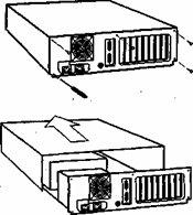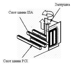 Вам належить відключити кабель живлення і відкрити корпус комп'ютера (мал. 1.9). Потім треба знайти вільний ISA чи PCI слот у залежності від типу шини модему (слот ISA длинніше), обережно вставити плату модему і небагато надавити на неї зверху, поки вона не ввійде у слот до кінця.
