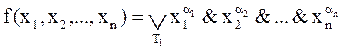 Любая таблично заданная ФАЛ f(x1, x2, …, xn) (кроме тождественного нуля) может быть представлена в следующем аналитическом виде: