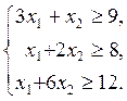 По смыслу задачи изменяемые параметры х 1 и х 2 должны быть целыми и неотрицательными. От них зависит не только прибыль, но и объем затрачиваемых ресурсов. Так как потребление ресурсов не должно превышать их запасов (табл. 1), то ограничения на потребление ресурсов выразится системой неравенств: