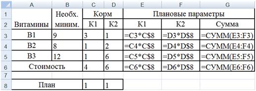 Создадим соответствующую компьютерную модель в Ехсеl (рис. 7).