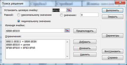 Рис. 9. Задание параметров поиска решений