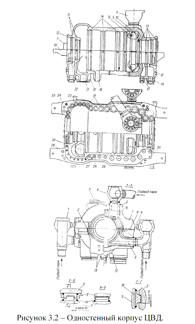 Поэтому для ЦСД применяют комбинированные роторы, т.е. вобласти паровпуска он выполняется цельнокованым, авобласти выхода пара из ЦСД -сборным (снасадными дисками).