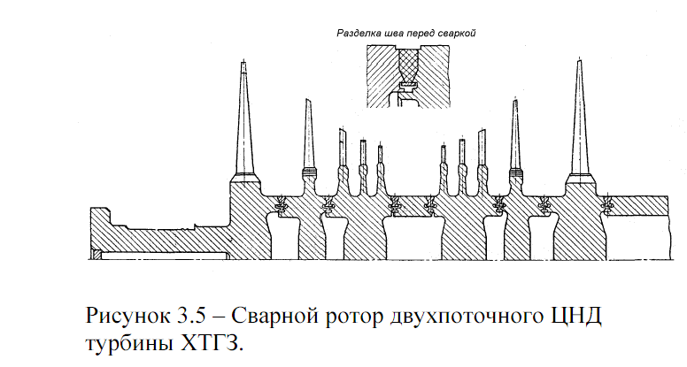 Поскольку металлургическая иметаллообрабатывающая промышленность внастоящее время не могут получить поковку таких размеров, то роторы ЦНД выполняют сборными (с насадными дисками) или сварными.