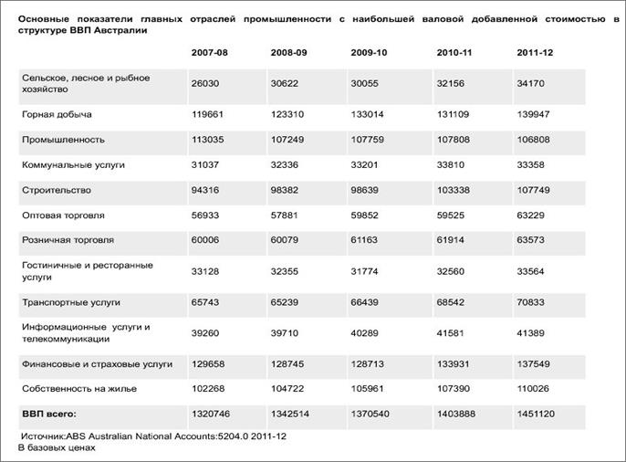 1.2. Характеристика развития основных сфер и отраслей экономики Австралии