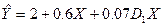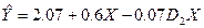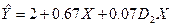 3.2 Если вместо D1 использовать переменную D2, равную 0 для городских и 1 для сельских жителей, то зависимость примет вид: